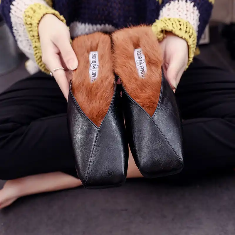 women flipflop Footwear Flat Suede fur famous shoes mules