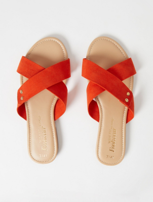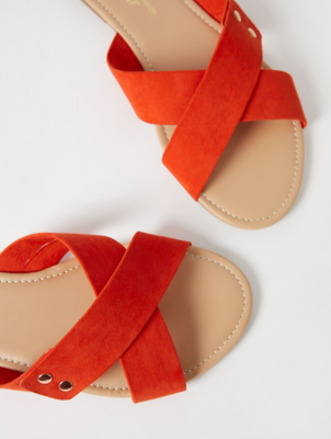 Wide Fit Orange Faux Suede Crossband asda sandals wide fit