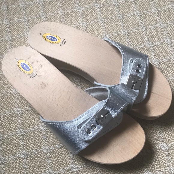 Dr Scholls Classic Silver Leatherwood dr scholl's classic wooden sandals