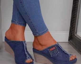 Denim mules | Etsy denim mules heels