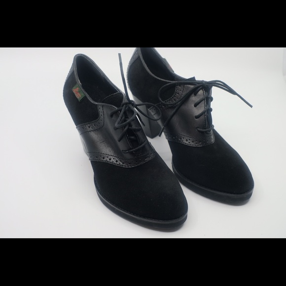 Womens Leather Suede Saddle Shoe Heels womens suede saddle shoes