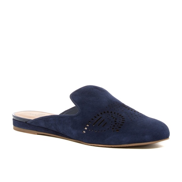 navy blue leather mules