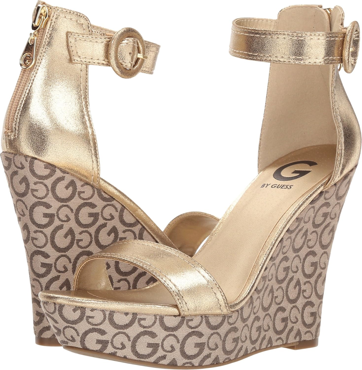 Donny Wedge Logo Sandals Gold 9 B(M guess sandals 2018