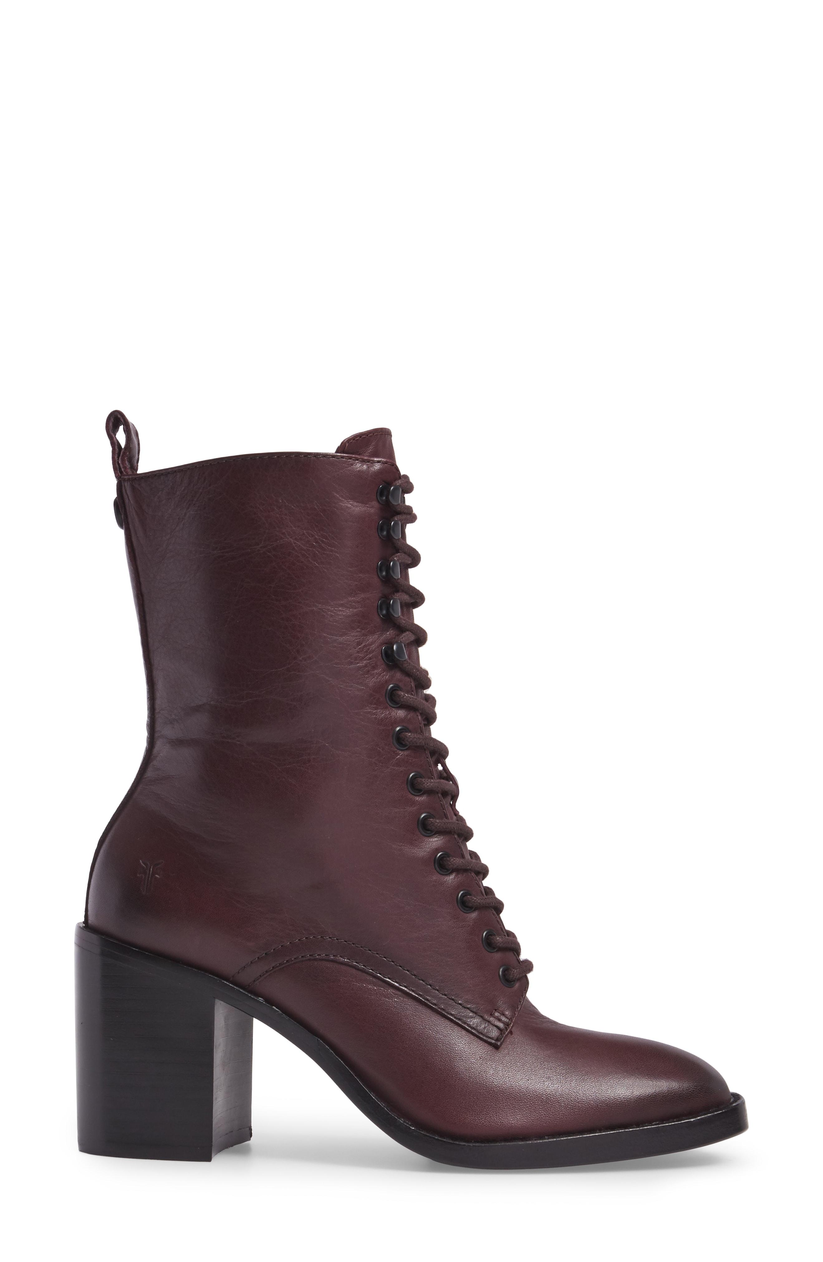 Frye Pia Heeled Combat Boots In Wine frye pia combat boots