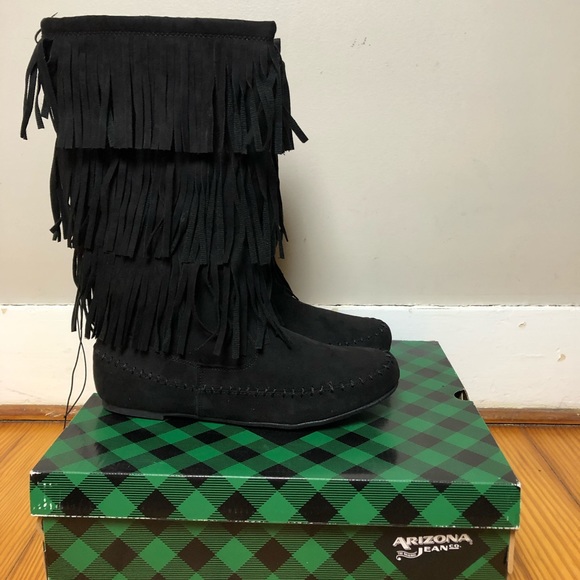 Black 4 Row Fringed Moccasin Boots