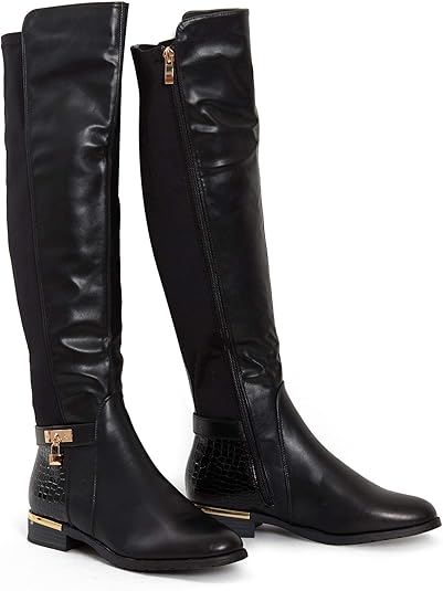 shelikes Womens Ladies Knee High Gold ladies boots amazon