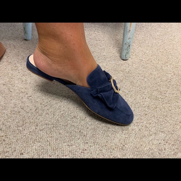 Leela Bow Loafer Mule Marine Blue Suede cole haan leela bow loafer mule