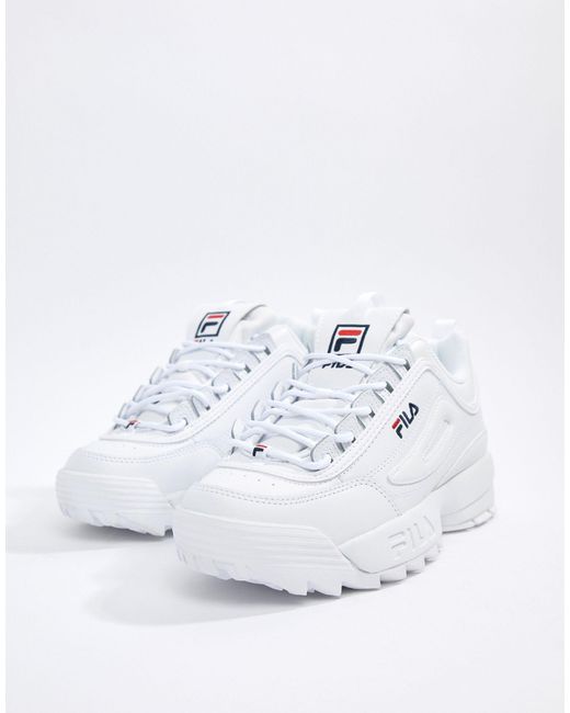 womens white fila disruptor ii platform white trainers fila