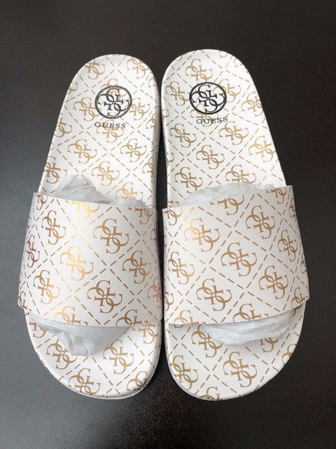 GUESS White/Gold Sliders Sandals guess sandals uk