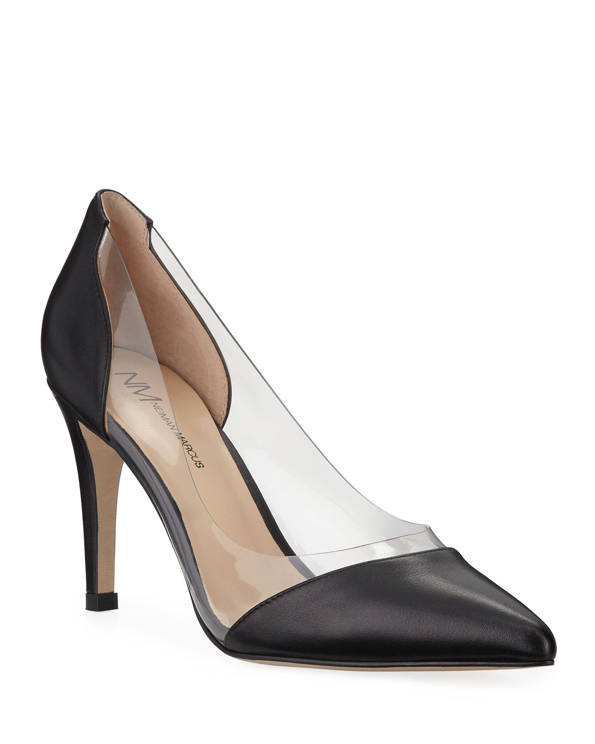 Neiman Marcus Leather Clear-Sided Pumps black pumps with clear sides