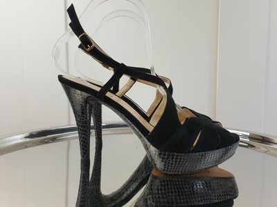 Snakeskin Platform Strappy Peep Toe unisa black heels