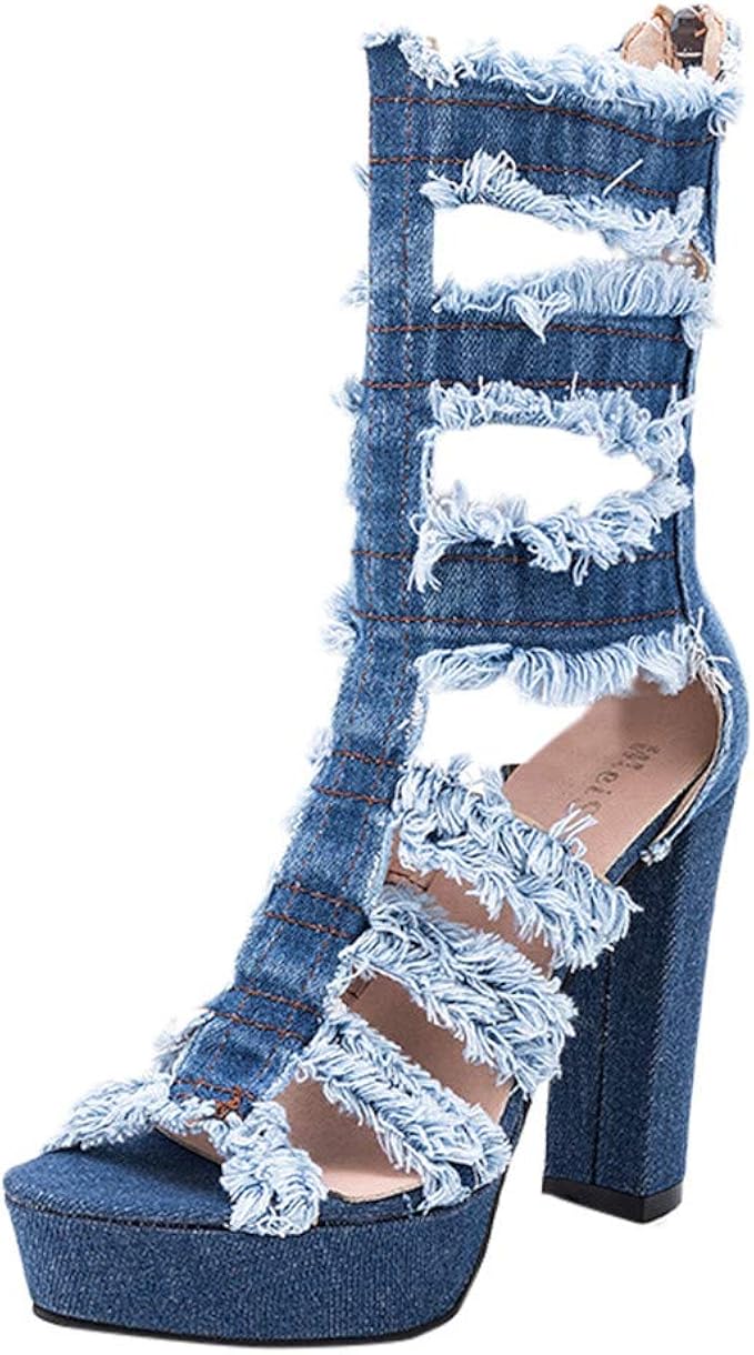 Gladiator Sandals Sexy Denim High Heel denim gladiator sandals