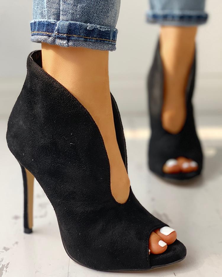 Peep Toe V-Shape Cut Out Ankle Boots v shoe boots
