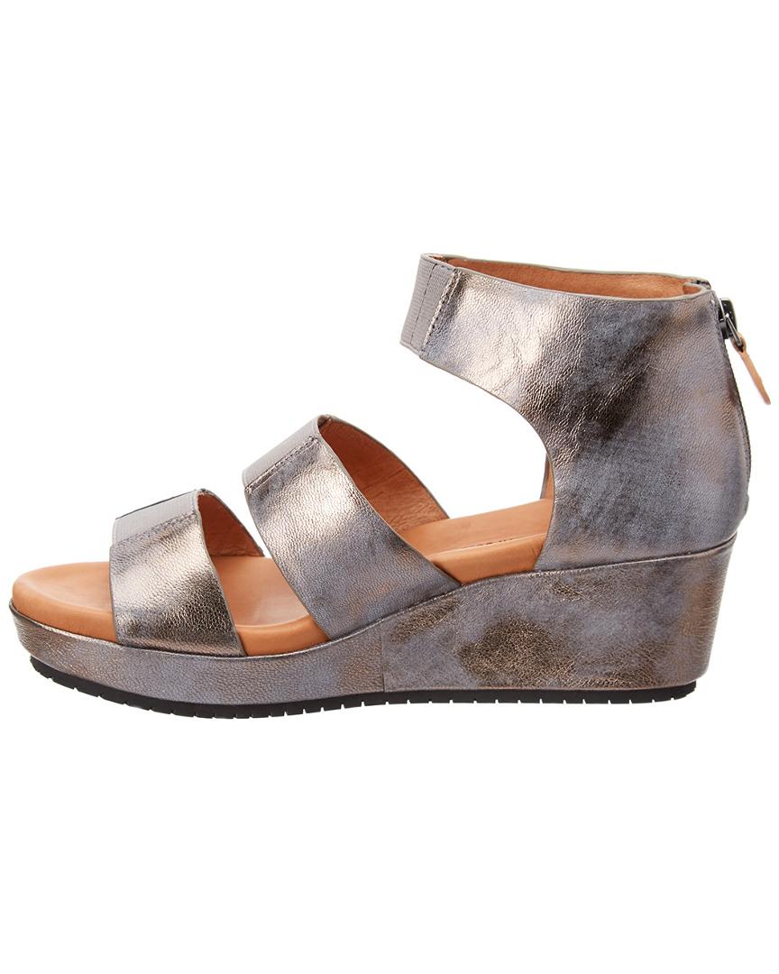 Milena Leather Wedge Sandal in Pewter gentle souls milena wedge sandal