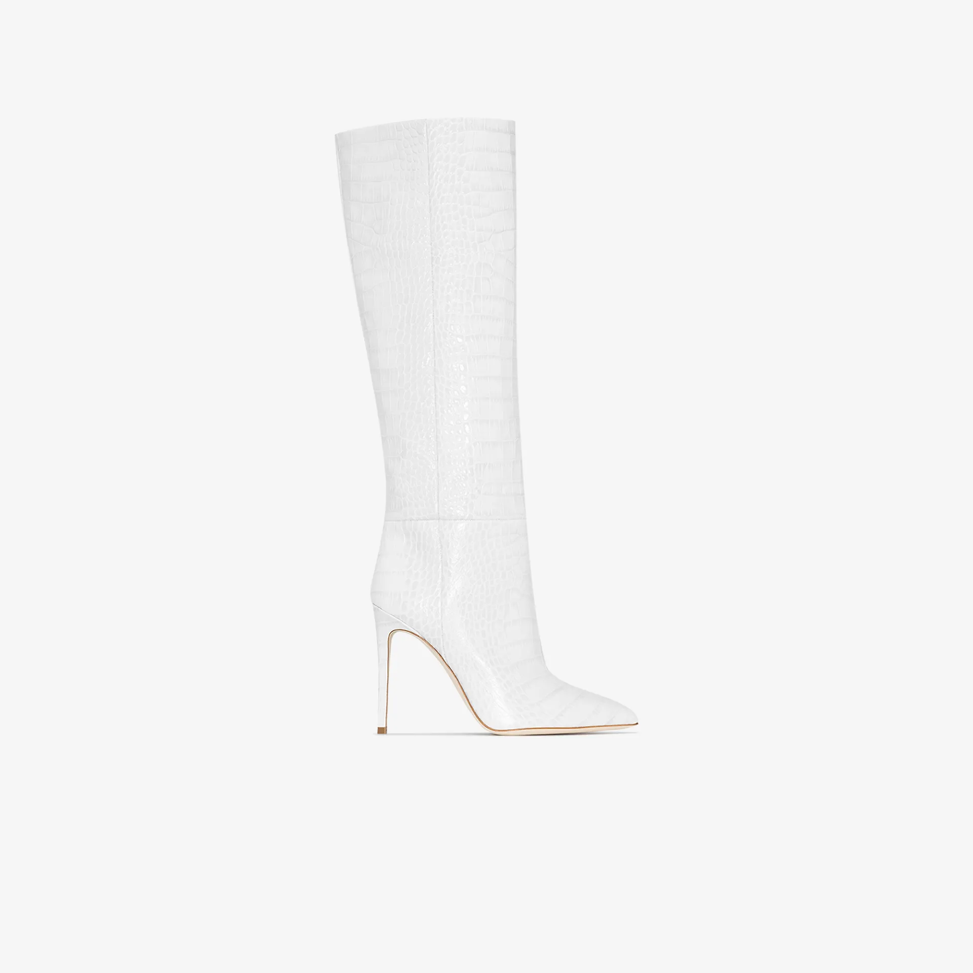 mock croc leather knee-high boots white knee high boots