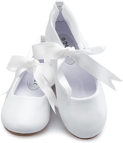 iGirldress Girls Ribbon Ankle Tie Matte white ballet flats with ribbon