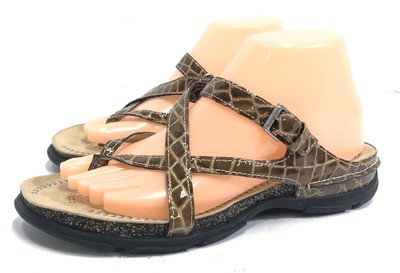 Brown Croc patent leather thong ecco living