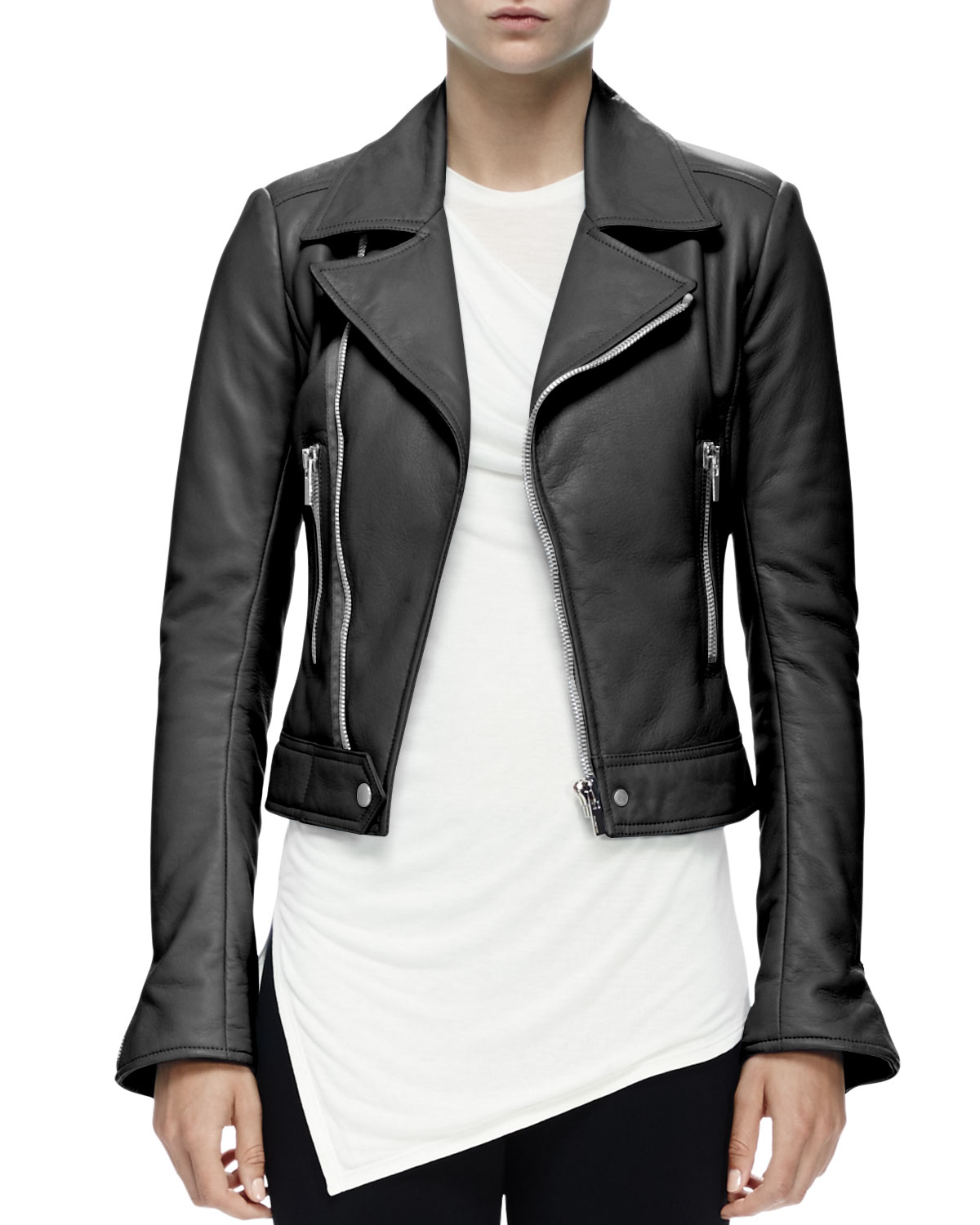 Balenciaga Cropped Leather Moto Jacket in Black - Lyst balenciaga moto jacket
