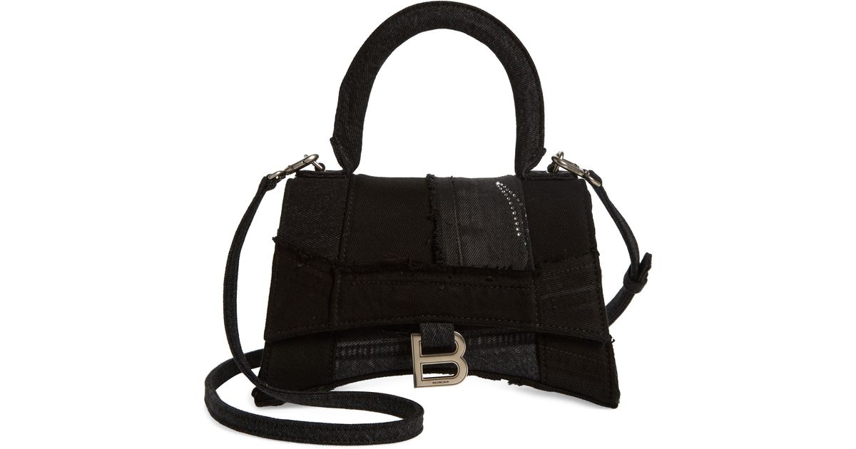 Balenciaga Small Denim Patchwork Hourglass Bag in Black | Lyst balenciaga patchwork bag
