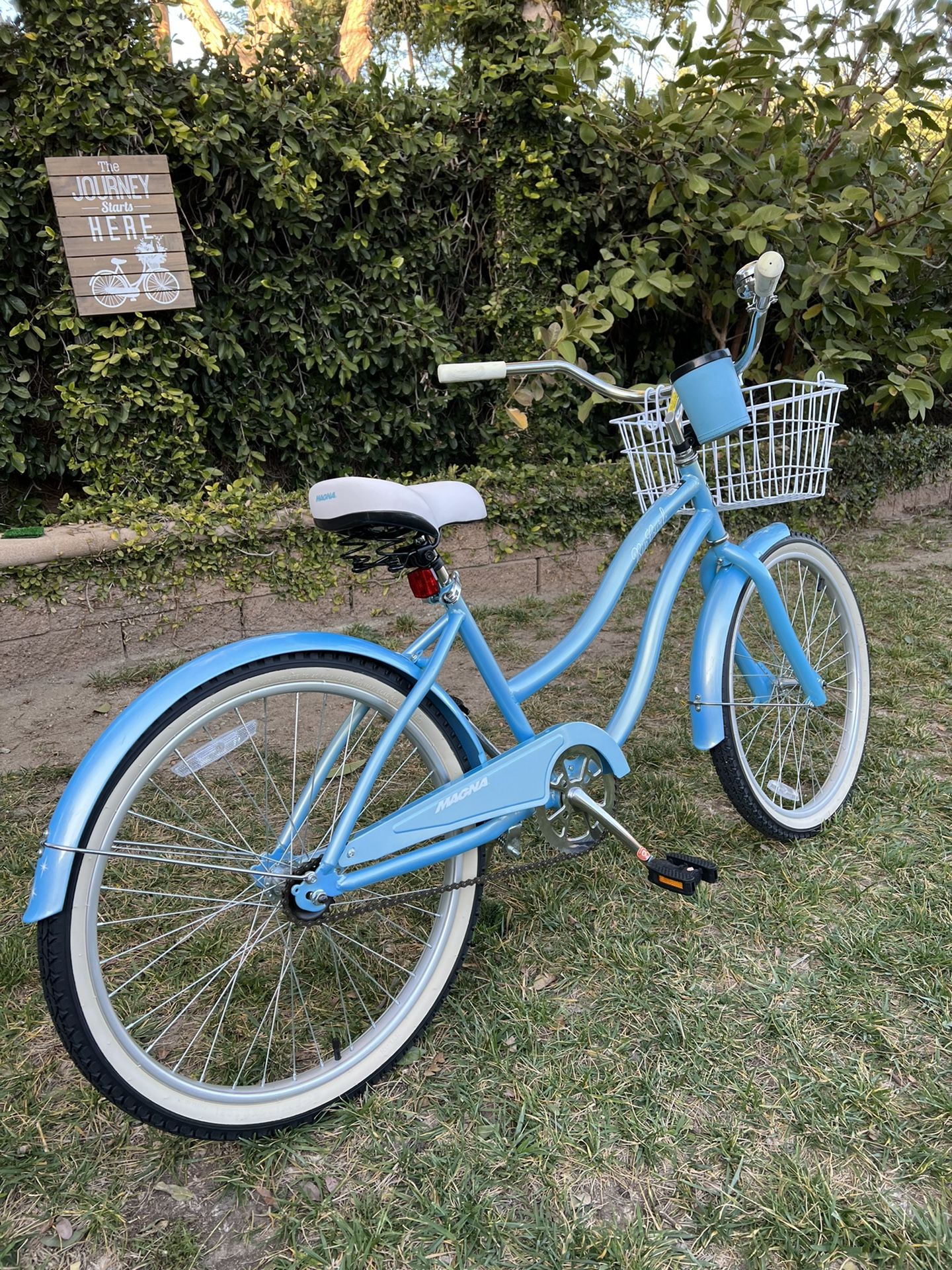 Girls/womenâs 24 inch Magna Rip Curl single speed baby blue Beach Cruiser bike in excellent magna beach cruiser
