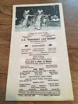 1933 PRESIDENT VAN BUREN MENU POSTCARD DOLLAR STEAMSHIPS HONOLULU kobe 10 alte