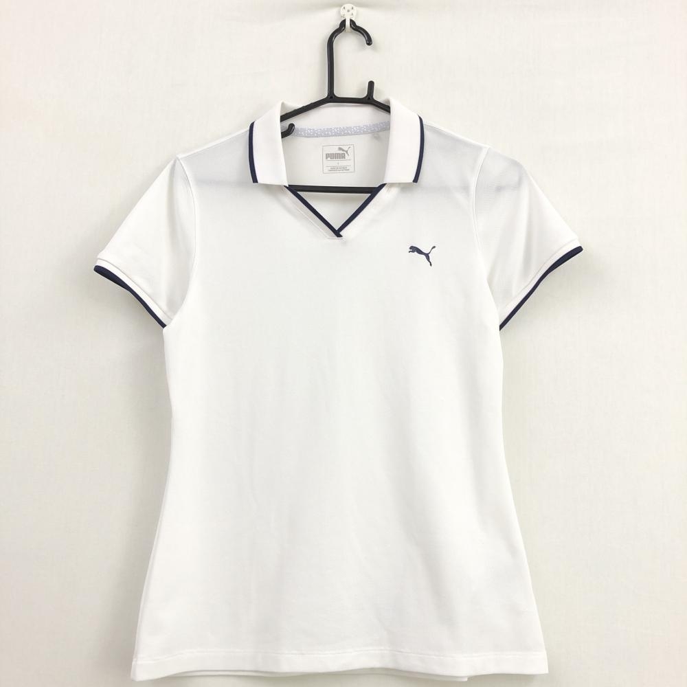 PUMA プーマ 半袖ポロシャツ 白×ダークネイビー 透け感 レディース L puma r1