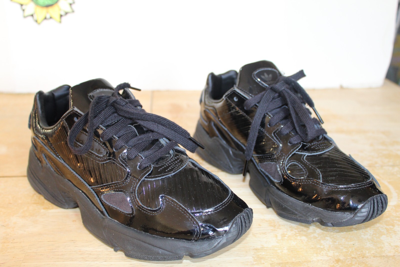 Adidas Falcon Triple Black Patent Leather Woman Shoes⦠- Gem adidas falcon triple black
