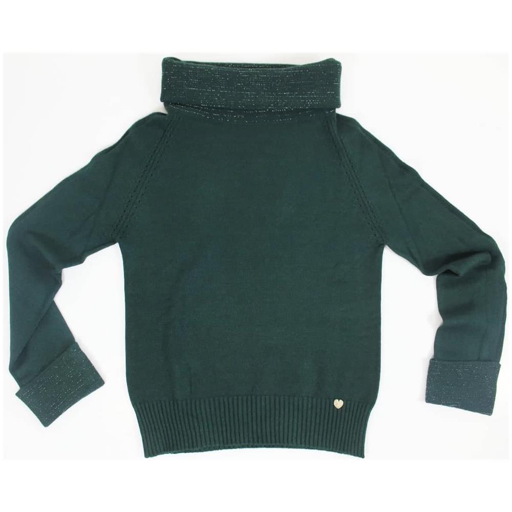 MAGLIETTA VERDE donna tinta unita maglione manica lunga collo alto maglia verde donna