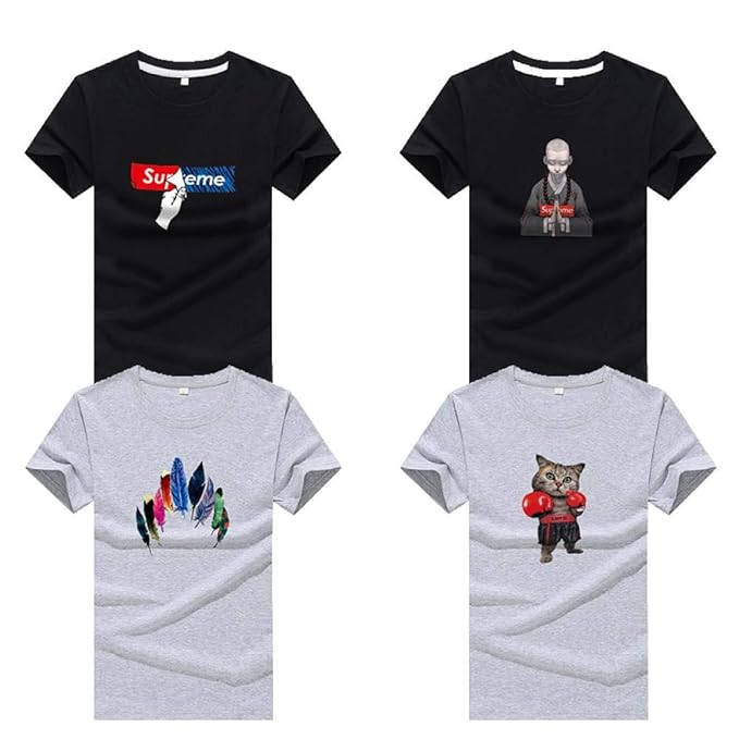 iMyoung - Confezione da 4 Magliette da Uomo, Tinta Unita magliette semplici tinta unita