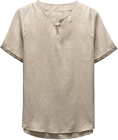 Maniche Corte t-Shirt da Uomo in Lino,Camicia a Maniche Corte magliette semplici tinta unita