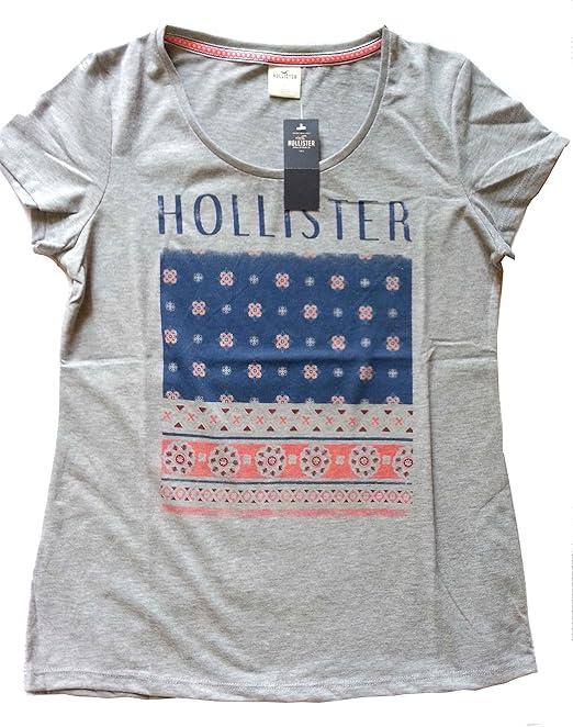 Hollister California t-shirt maglia donna print (S, grigio maglie hollister