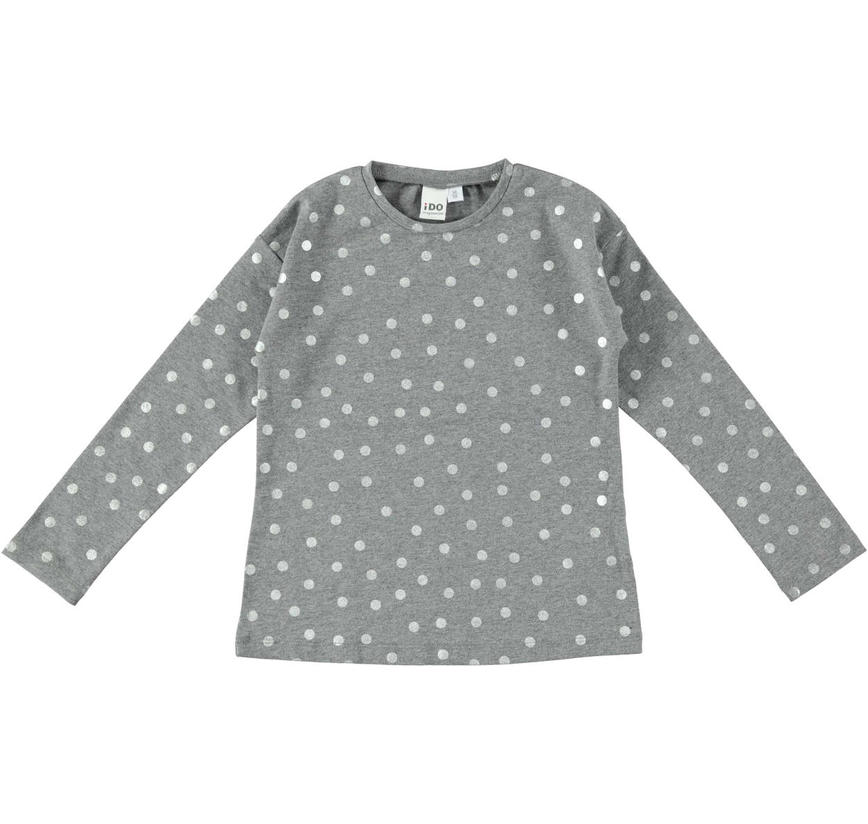 Maglietta in cotone con stampa a pois laminati per bambina da 3 a maglietta argento