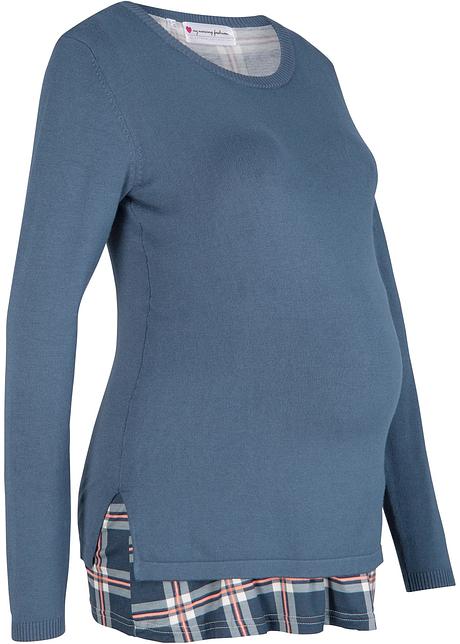 Maglione prémaman e da allattamento Indaco / grigio a quadri maglioni allattamento