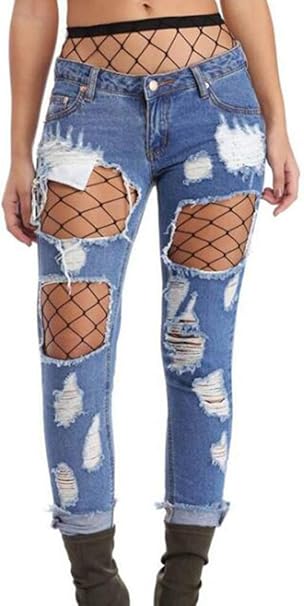 Huateng HT Jeans Larghi, Pantaloni a Buco, Pantaloni Dritti, Calze pantaloni di jeans larghi