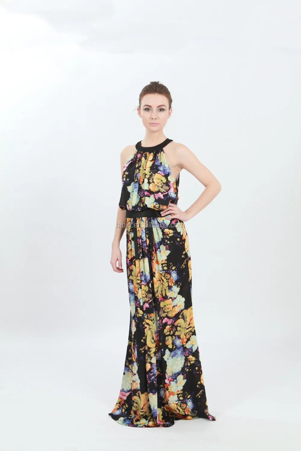Moda Estiva Senza Maniche Stampato Semplice Abito Lungo - Buy vestito lungo semplice