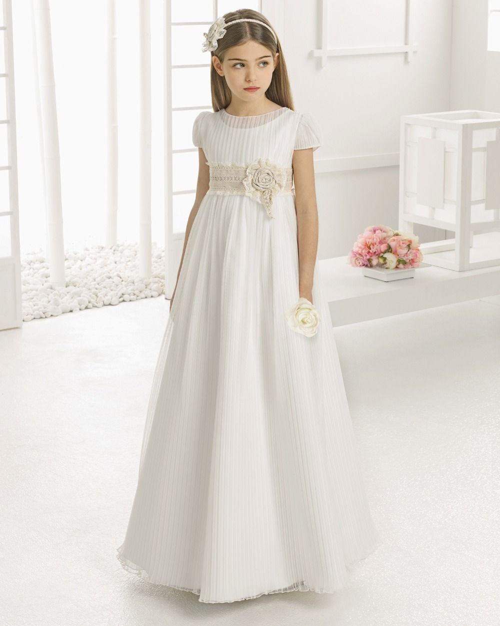 abiti prima comunione bambina color avorio in pizzo e tulleSposatelier vestiti di prima comunione