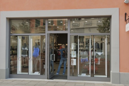 MUGELLO ITALY SEPTEMBER 11 2014: People walk along Timberland outlet barberino timberland