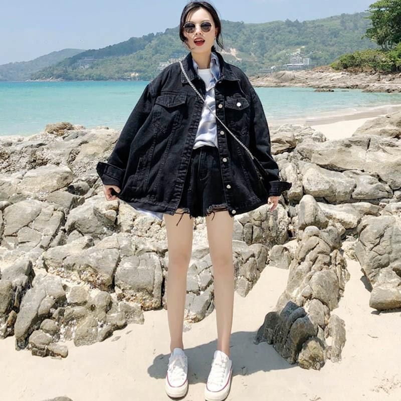 Spring Fall Women Korean Oversized short oversized denim jacket
