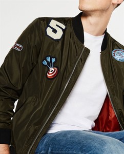 ZARA MAN KHAKI PATCH BOMBER JACKET REF zara bomber jacket with patches