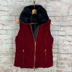 Red Velvet Puffer Vest Jacket Faux Fur ralph lauren velvet puffer