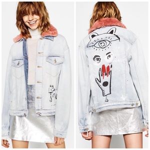 Jean Graffiti Denim Jacket W Fur Collar zara graffiti denim jacket