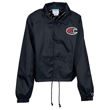 Champion Cropped Coaches Jacket in Black cropped champion windbreaker