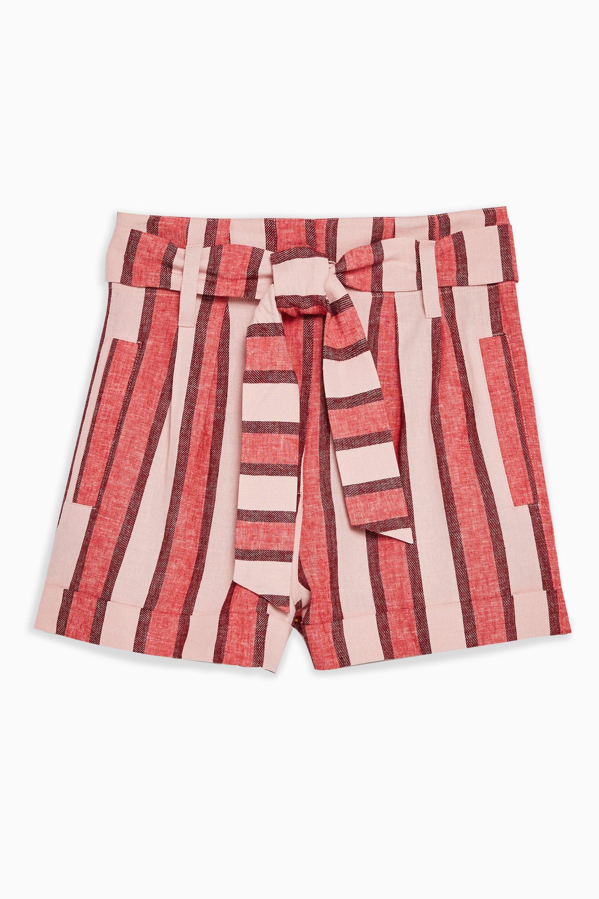 TOPSHOP Red Stripe Linen Blend Shorts topshop red shorts