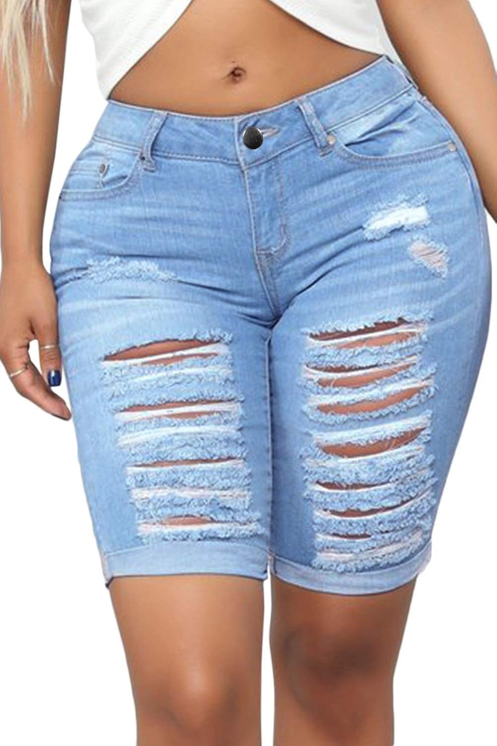 Light Blue Slim Fit Ripped Denim Shorts ripped jeans shorts