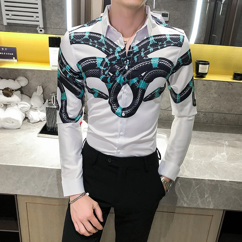 Clothes Camisa Masculina|Casual Shirts snake print dress shirt