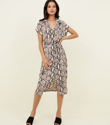 Camel Snake Print Midi Shirt Dress snake print dress shirt