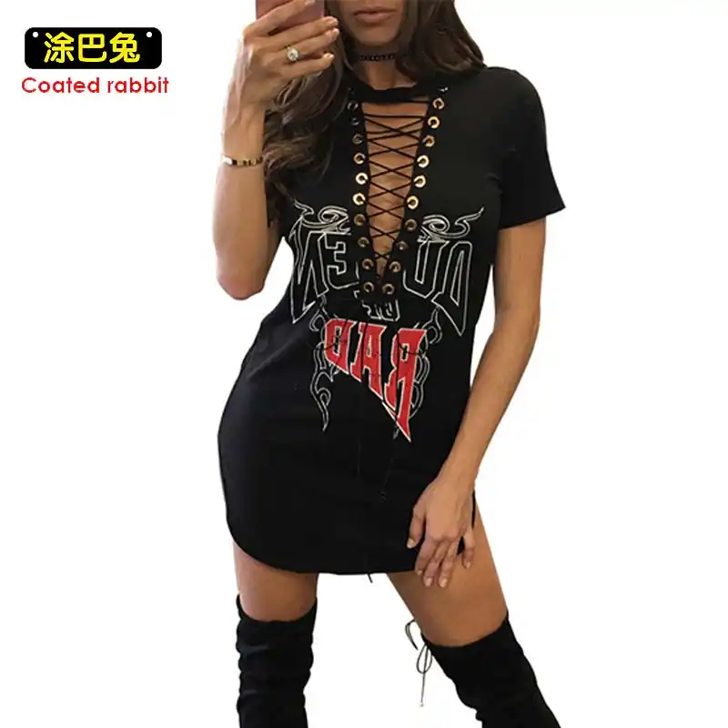 Sexy Bandage Bodycon Party Dress Casual choker neck t shirt dress