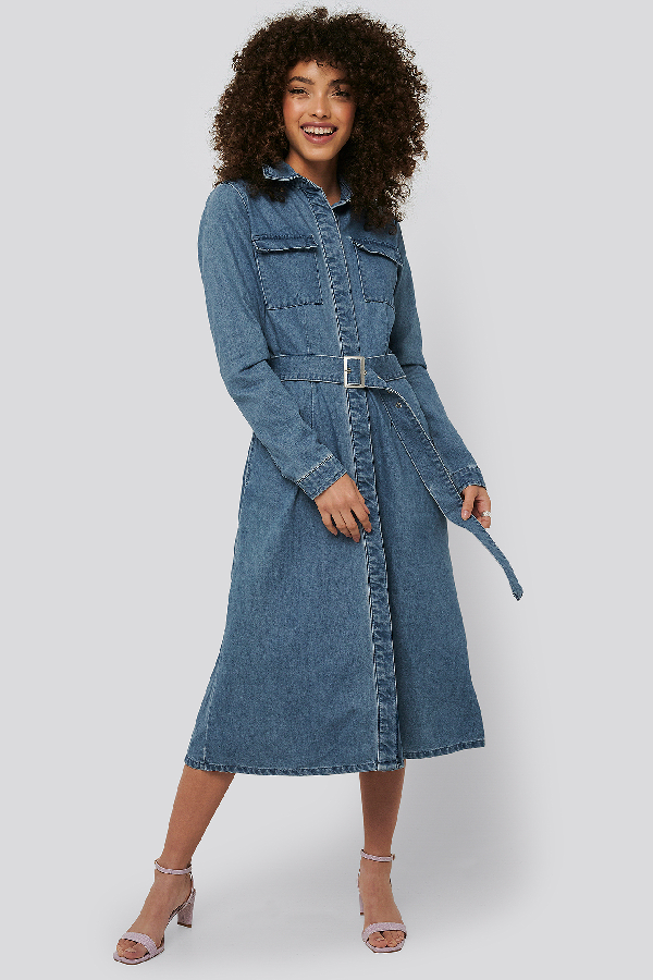 Vero Moda Blue Belted Denim Shirt Dress belted denim shirt dress
