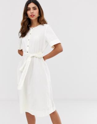 Vero Moda button through tie waist midi tie waist midi shirt dress