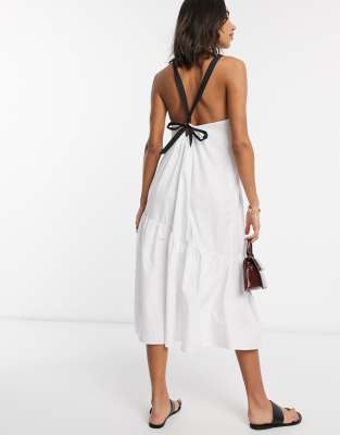 ASOS DESIGN cotton poplin halter midi white halter sundress